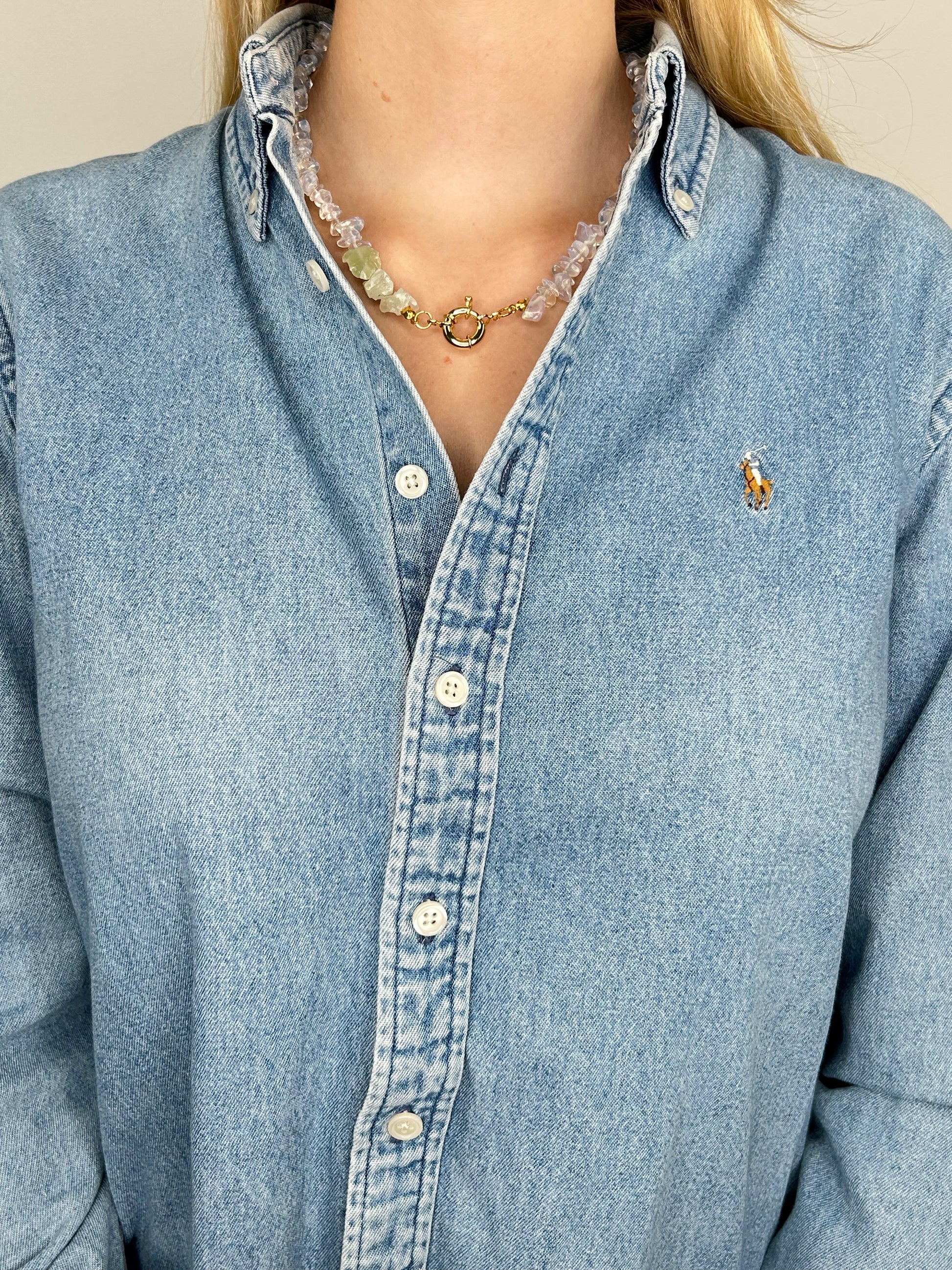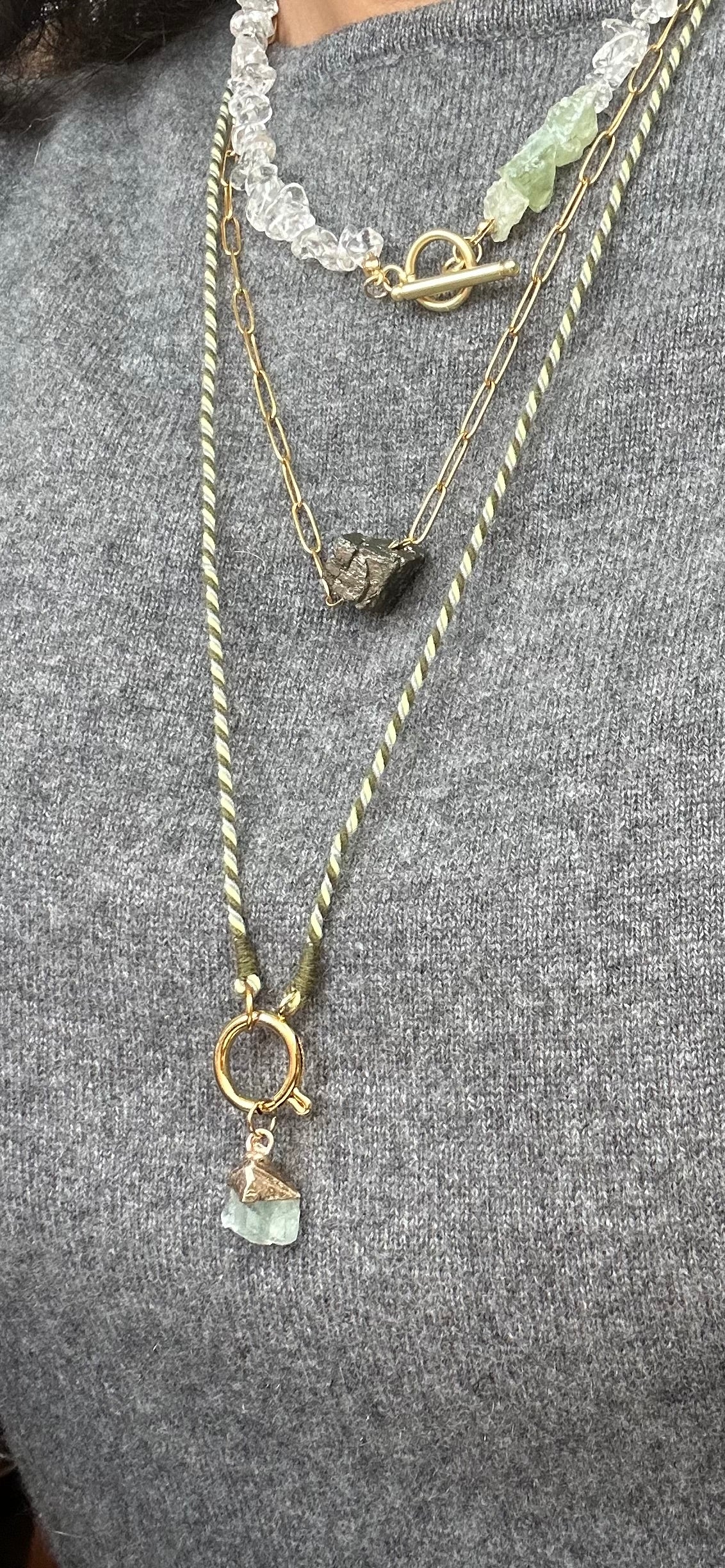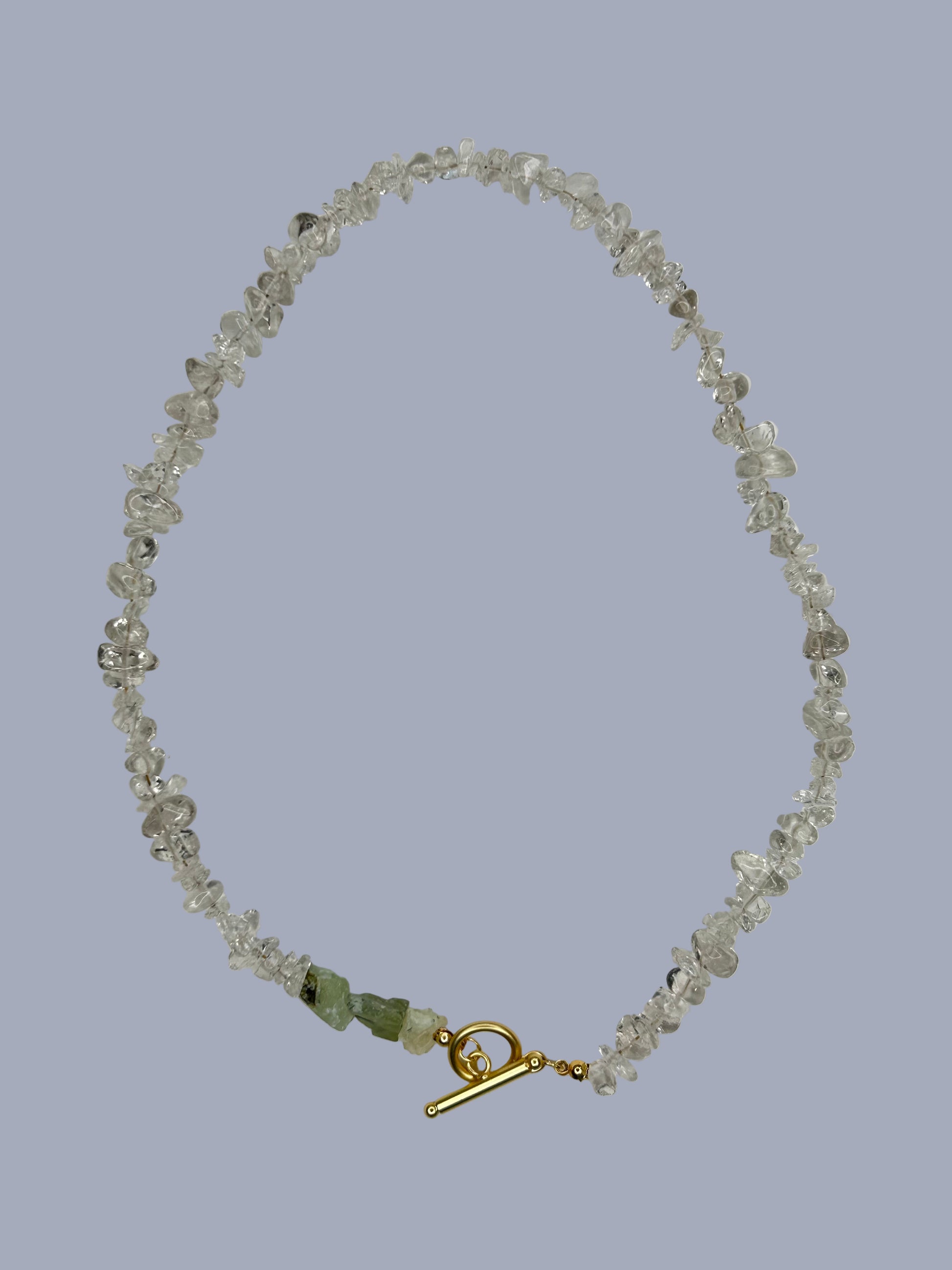 Zart, edel und ein Hauch Luxus. Entdecke unsere handgefertigte Halbedelsteinkette mit Bergkristall in Kontrast zu ungeschliffenen Prehnit. Ein Schmuckstück, das Leichtigkeit und Eleganz perfekt verbindet. Seethrough ist in zwei Varianten mit Karabiner- oder Knebelverschluss erhältlich.