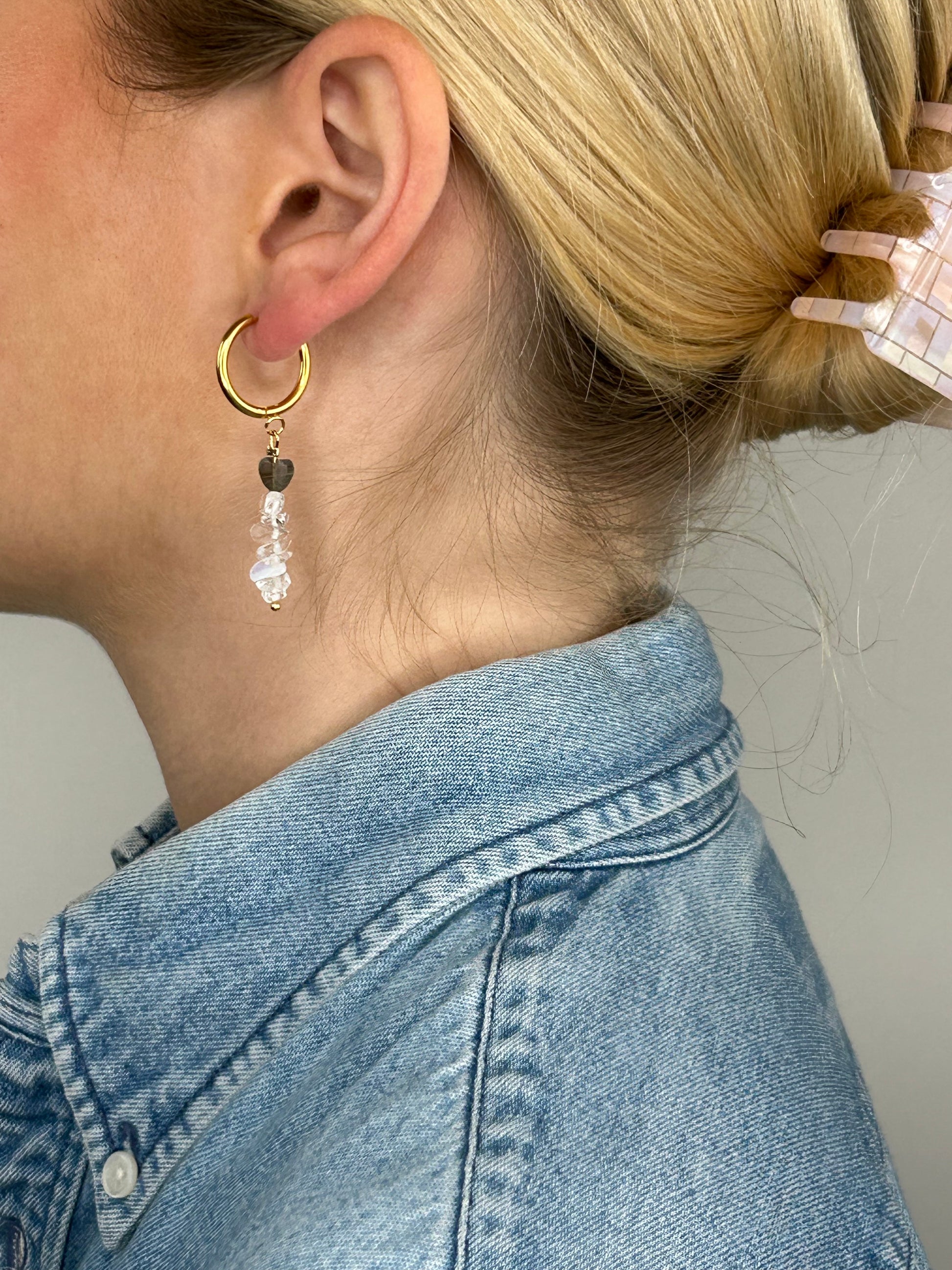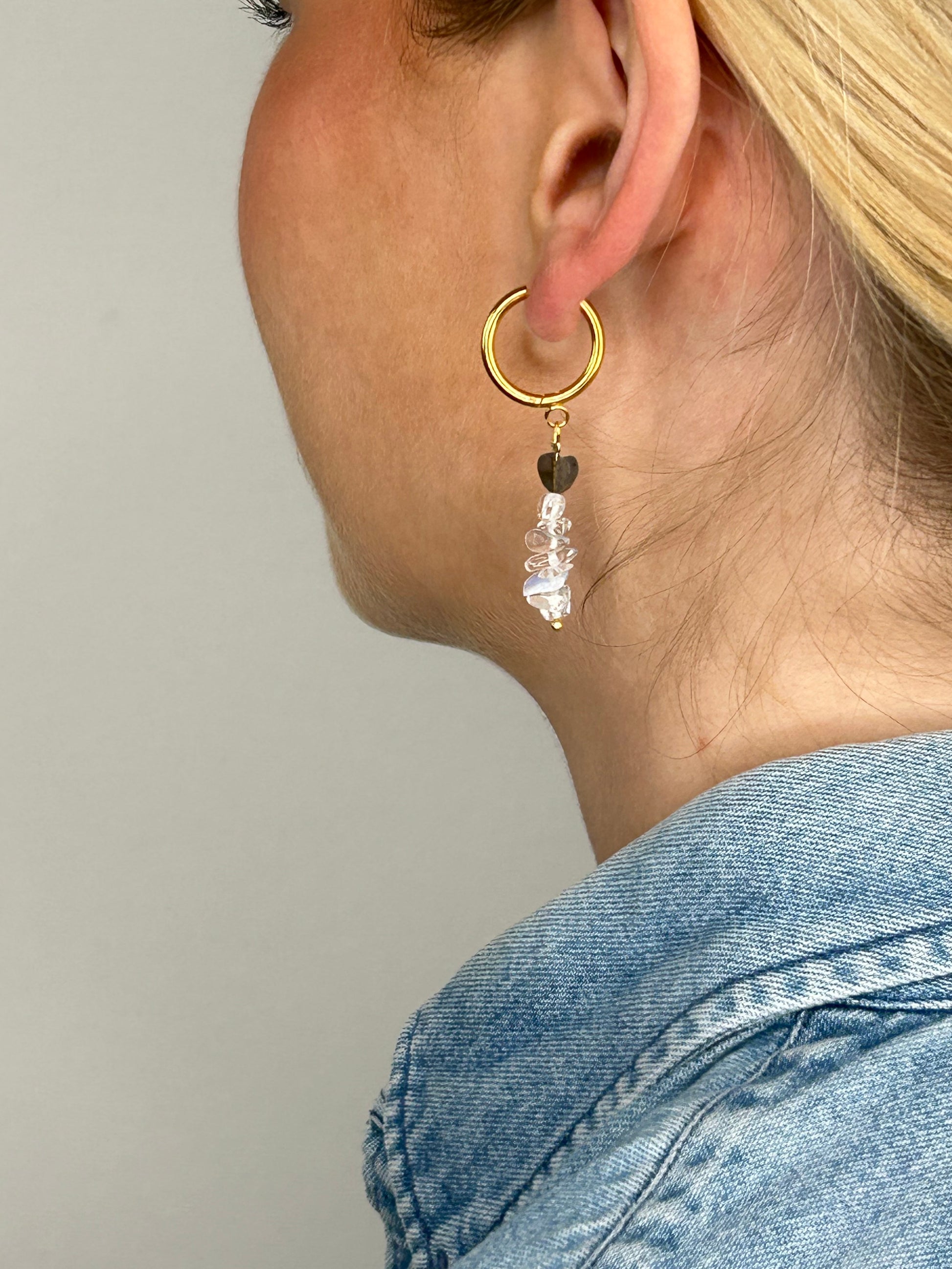 Unser handgefertigter Ohrring Madiha kombiniert Eleganz mit Moderne, ob als Alltagsbegleiter, oder zum Abendoutfit, lässt er sich vielfach kombinieren. Er besteht aus natürlichen Edelsteinen und ist in vielen Farben verfügbar. Die Handarbeit und Naturmaterialien machen jeden Ohrring zu einem Einzelstück, das Deine Individualität unterstreicht.