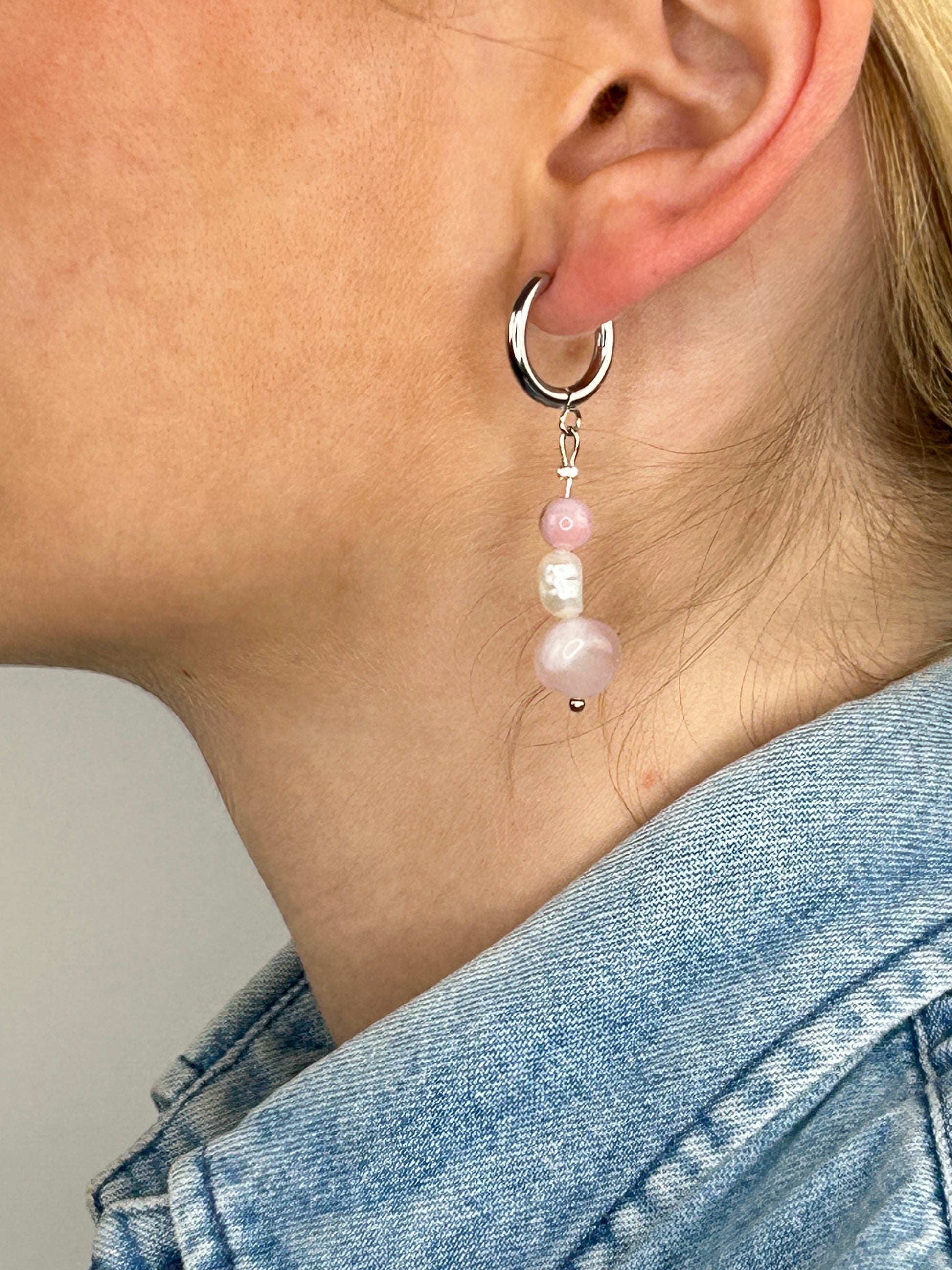 Unser handgefertigter Ohrring Nayla kombiniert Eleganz mit Moderne, ob als Alltagsbegleiter, oder zum Abendoutfit, lässt er sich vielfach kombinieren. Er besteht aus natürlichen Edelsteinen, kombiniert mit einer Süßwasserperle und ist in vielen Farben, sowie in Gold- und Silber-Varianten verfügbar. Die Handarbeit und Naturmaterialien machen jeden Ohrring zu einem Einzelstück, das Deine Individualität unterstreicht.